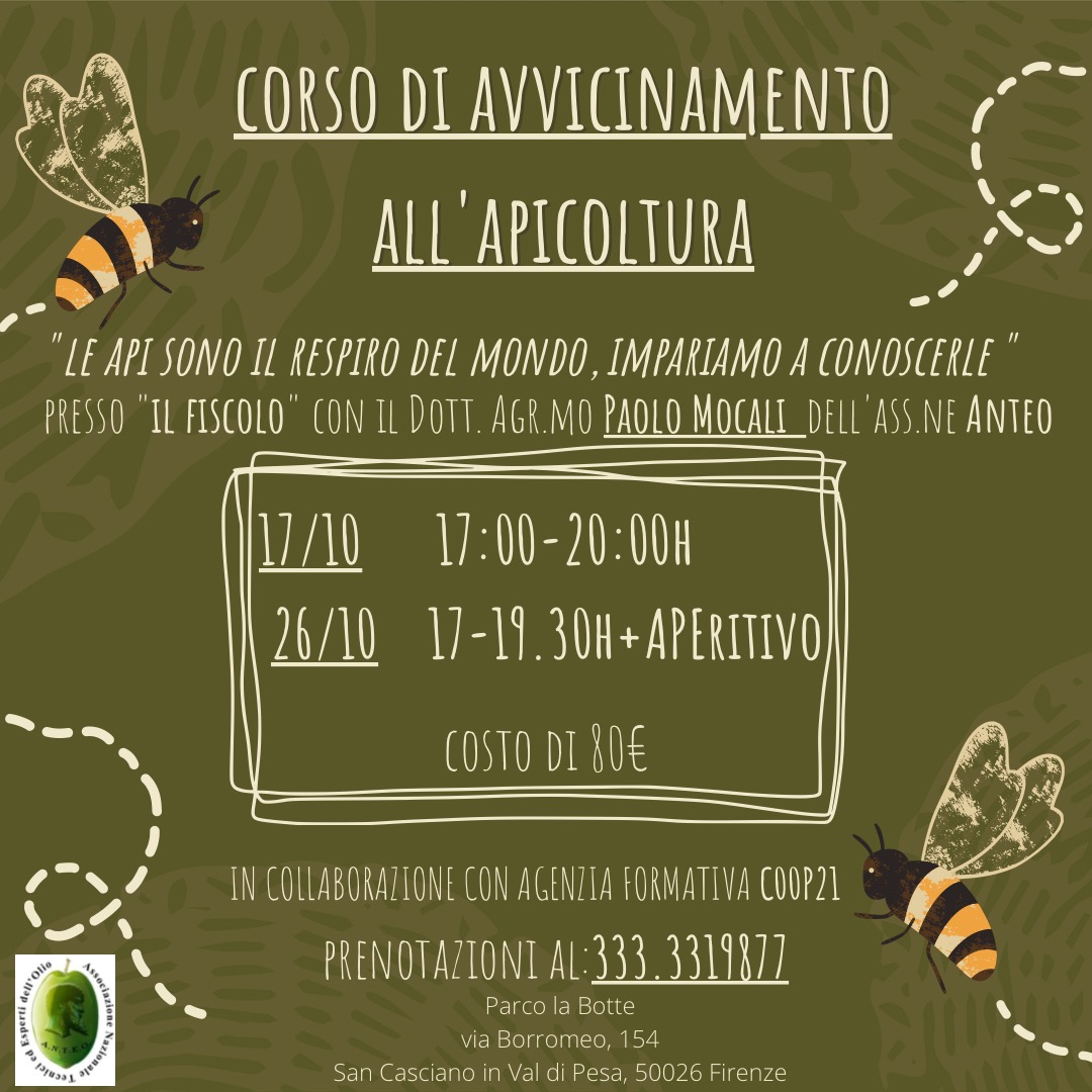 “Le api sono il respiro del Mondo, impariamo a conoscerle” Questo il tema del corso di avvicinamento all’apicultura organizzato dall’associazione ANTEO, in collaborazione con l’agenzia formativa di Coop.21, presso il FISCOLO, parco la Botte, Via Borromeo 154, San Casciano Val di Pesa. Le lezioni tenute dall’agronomo dott. Paolo Mocali si svolgeranno il 17 Ottobre […]