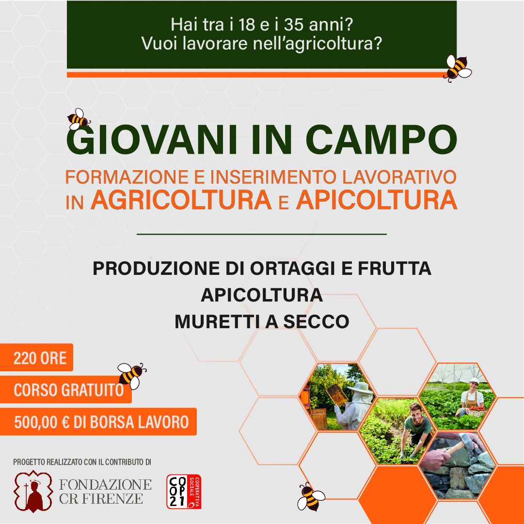 APERTE LE ISCRIZIONI PER IL NUOVO CORSO DI FORMAZIONE COOP21 “GIOVANI IN CAMPO”! Il percorso formativo ed inserimento lavorativo in agricoltura intende far acquisire le competenze relative all’ADA 1050 Conduzione delle produzioni arboree, erbacee ed ortofloricole del repertorio delle Figure Professionali della Regione Toscana. Alla fine del percorso i corsisti dovranno aver acquisito competenze inerenti la lavorazione e fertilizzazione […]